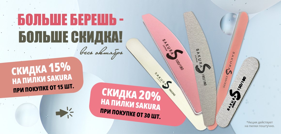 Скидка 15% на пилки Sakura при покупке от 15 штук.