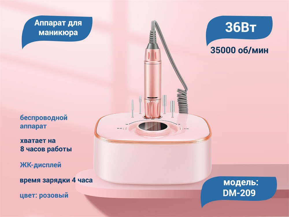 Аппарат для маникюра DM209, розовый, 36W, 35000 оборотов
