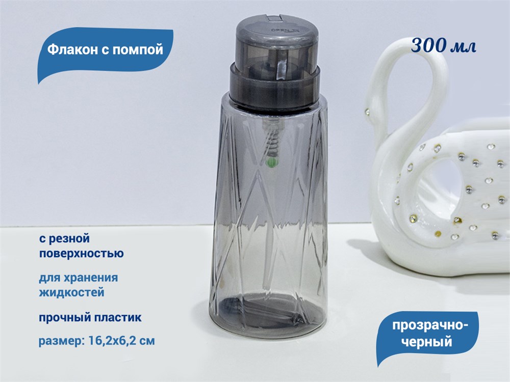 Флакон с помпой, прозрачно-черный, 300 мл