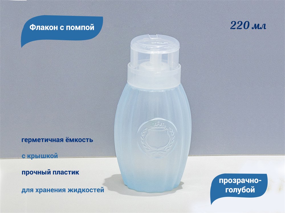 Флакон с помпой, прозрачно-голубой, 220 мл