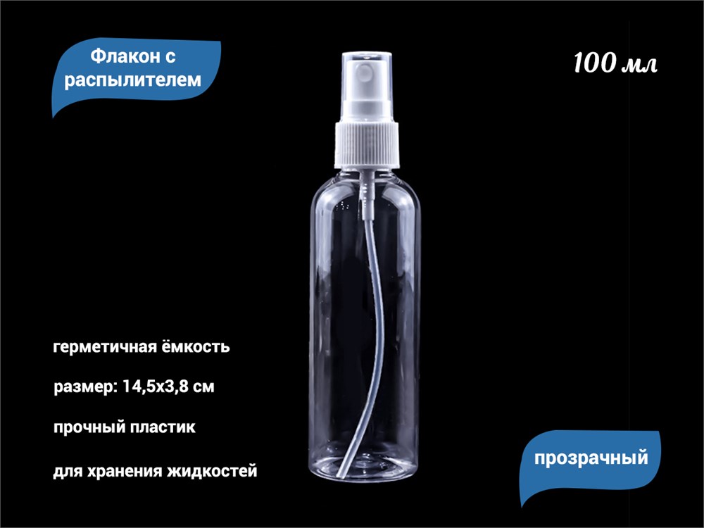 Флакон с распылителем прозрачный, пластик, 100 мл