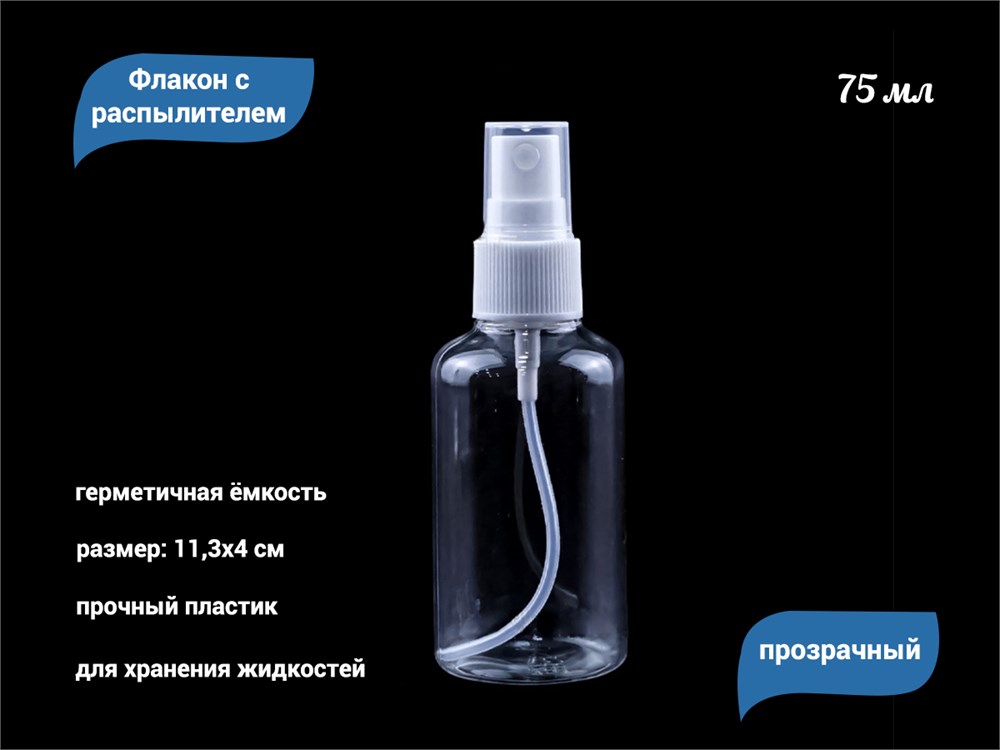 Флакон с распылителем прозрачный, пластик, 75 мл