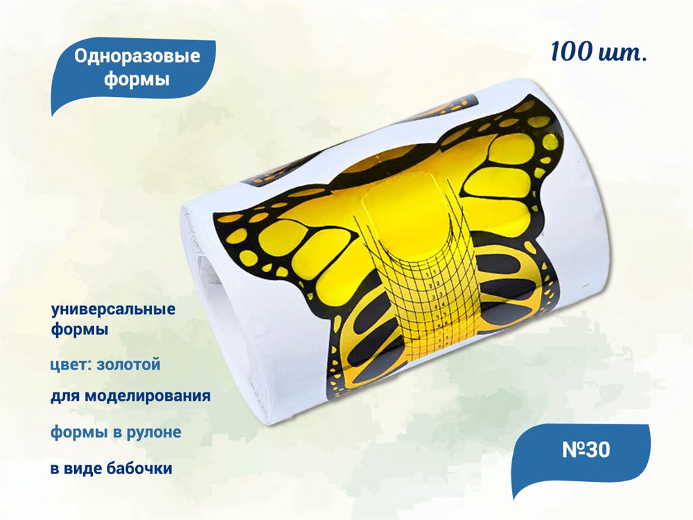 )Универсальные формы золотого цвета в виде бабочки для моделирования ногтей.