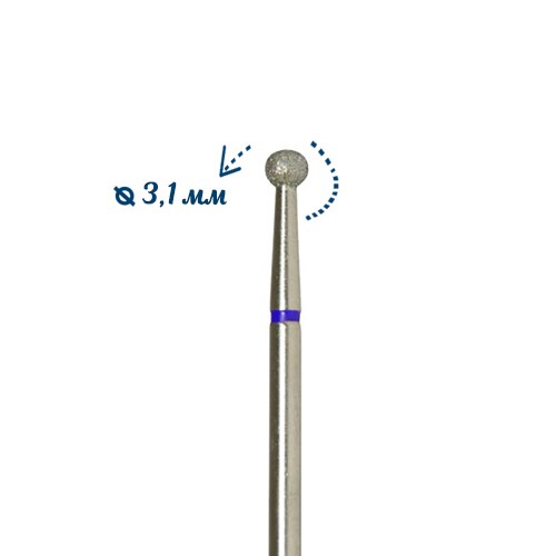 Фреза алмазная ВладМиВа средняя (синяя) насечка, Ø0,31 см, L45, шар (сфера)