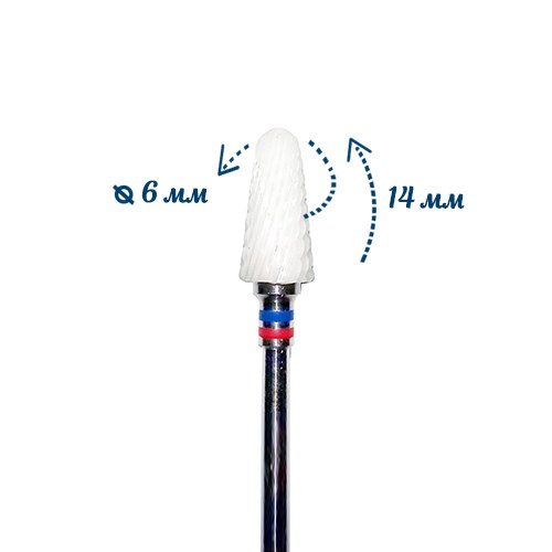 Фреза керамическая Robin Nails мелкая/средняя (сине-красная) насечка, Ø0,6 см, конус закругленный