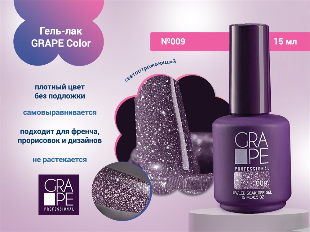 Гель-лак GRAPE Color №009, 15 мл