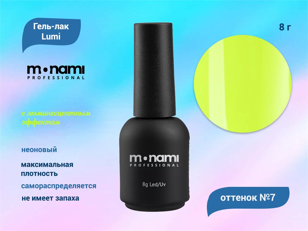 )Гель-лак Monami в неоновом лаймовом цвете без переливов, с люминесцентным эффектом – это непревзойденное качество покрытия и стойкость вашего маникюра.
