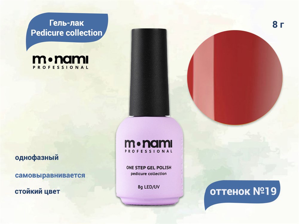 Однофазный гель-лак Monami в красном цвете без переливов – это непревзойденное качество покрытия и стойкость вашего педикюра.