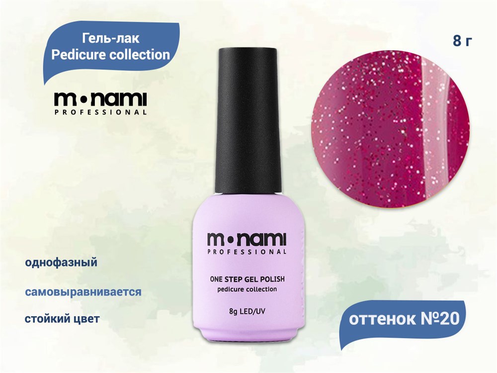 Однофазный гель-лак Monami в розовом цвете с шиммером – это непревзойденное качество покрытия и стойкость вашего педикюра.