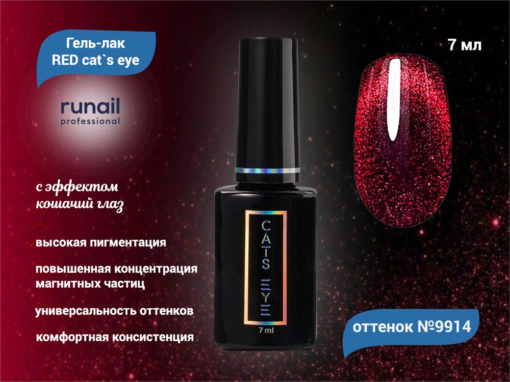 Гель-лак ruNail RED cat`s eye №9914, 7 мл