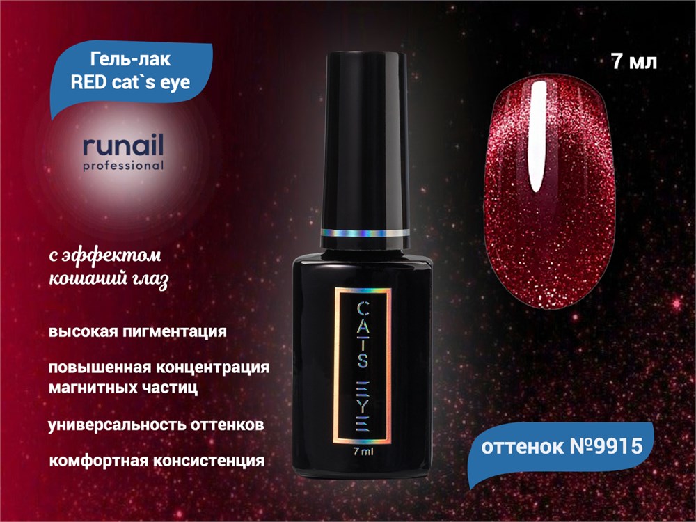 Гель-лак ruNail RED cat`s eye №9915, 7 мл