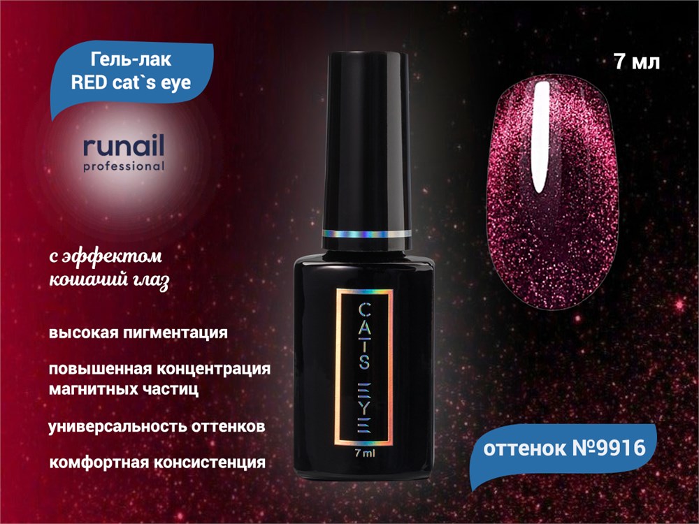 Гель-лак ruNail RED cat`s eye №9916, 7 мл