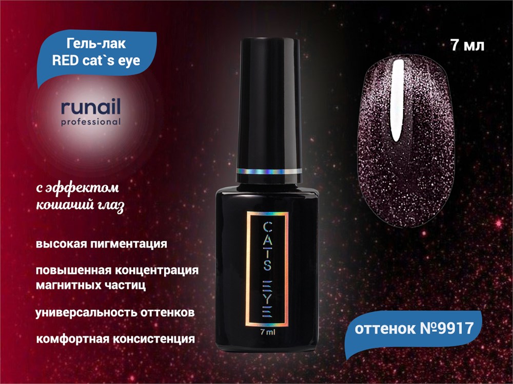 Гель-лак ruNail RED cat`s eye №9917, 7 мл