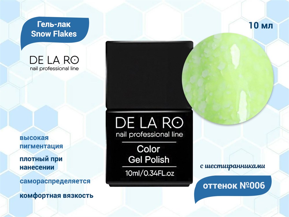 Гель-лак Snow Flakes 006, Delaro, 10 мл