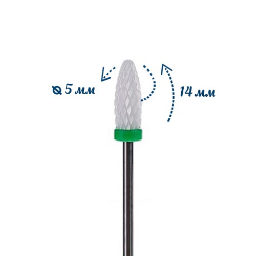 Керамическая фреза Robin Nails Long flame C грубая (зеленая) насечка, Ø0,5 см, пуля