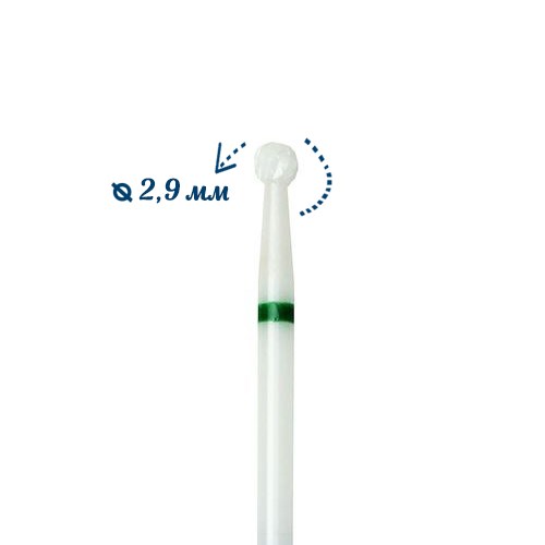 Керамическая фреза Robin Nails грубая (зеленая) насечка, Ø0,29 см, шар (сфера)