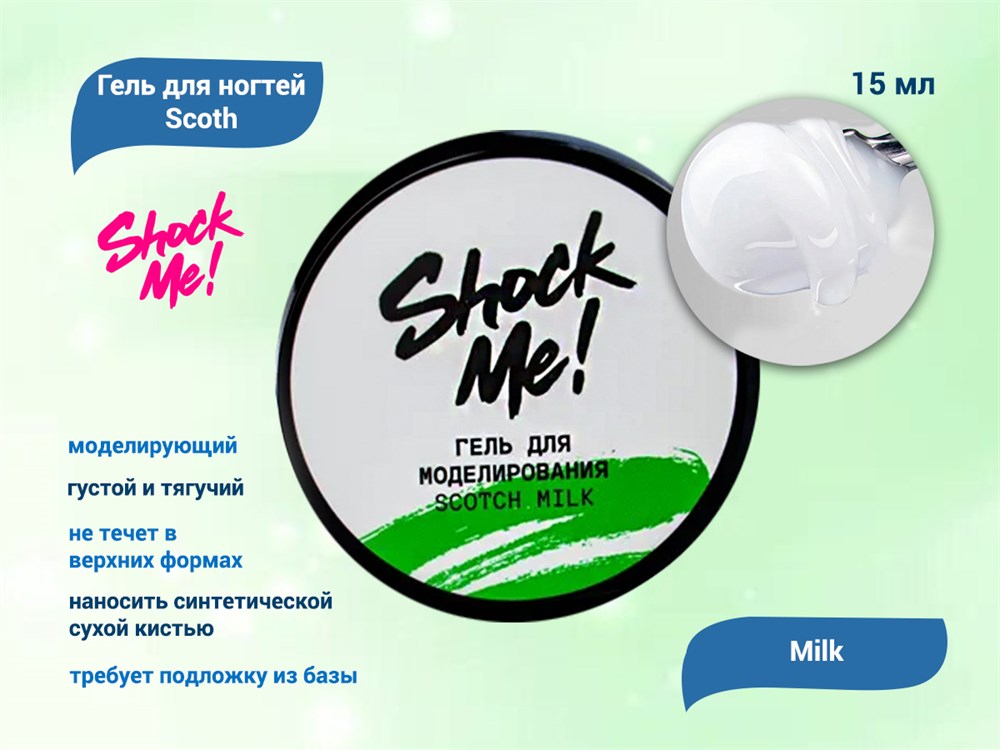 Моделирующий гель для ногтей Scoth Milk ,Shock Me,15 мл