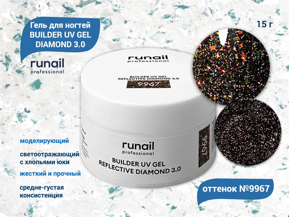 Моделирующий УФ-гель ruNail светоотражающий BUILDER UV GEL DIAMOND 3.0, 15г №9967