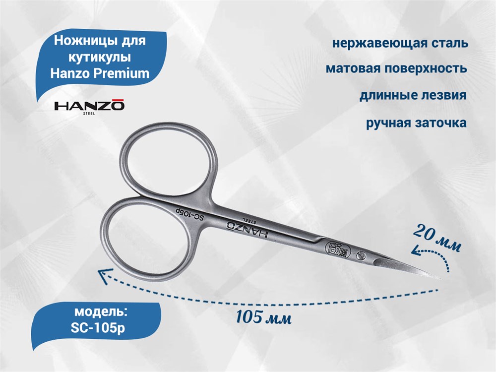 Ножницы для кутикулы Hanzo Premium, длина 105 мм
