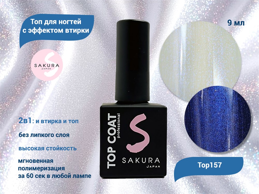 Топ для ногтей Sakura Top157 с эффектом втирки, 9 мл