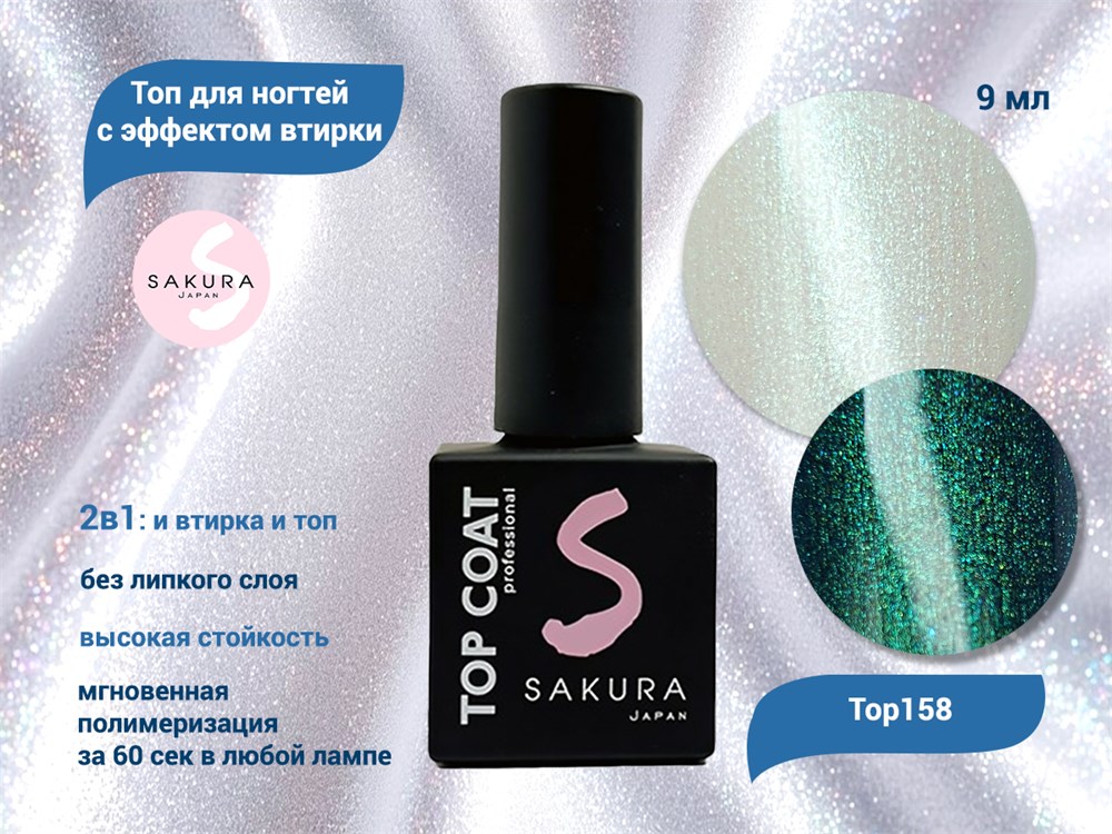 Топ для ногтей Sakura Top158 с эффектом втирки, 9 мл