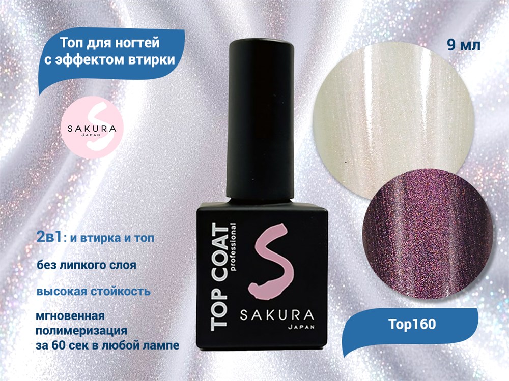 Топ для ногтей Sakura Top160 с эффектом втирки, 9 мл